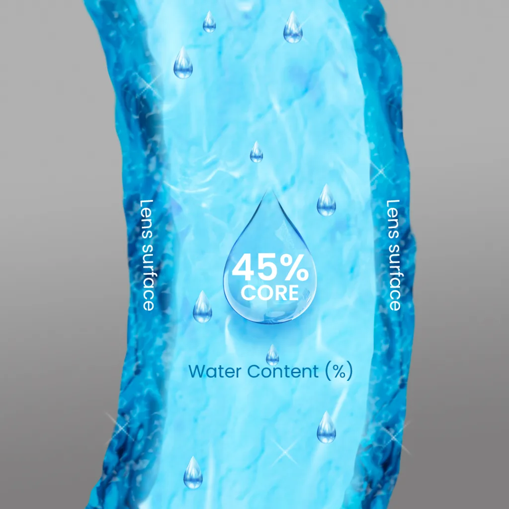 Our lenses feature Bioplus Wetting Agent, ensuring excellent initial comfort the moment you wear them. Say goodbye to discomfort and irritation, and hello to a smooth, soothing experience from the start.